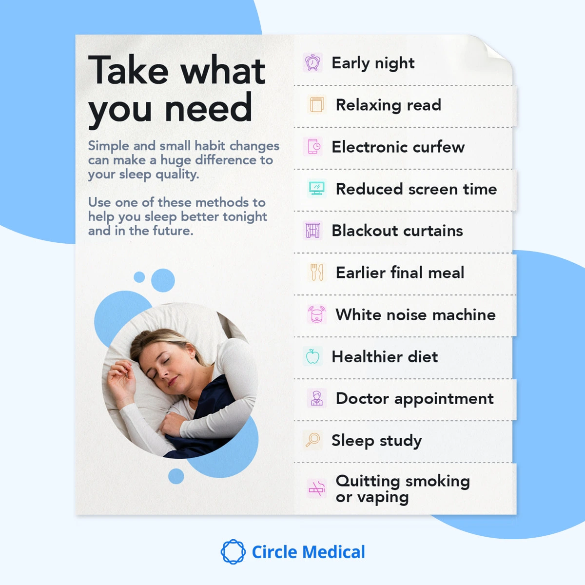 Start relaxing 60–90 minutes before you go to sleep. This can include reading, dim lighting, or gentle movement; anything that signals to the brain that rest is coming.