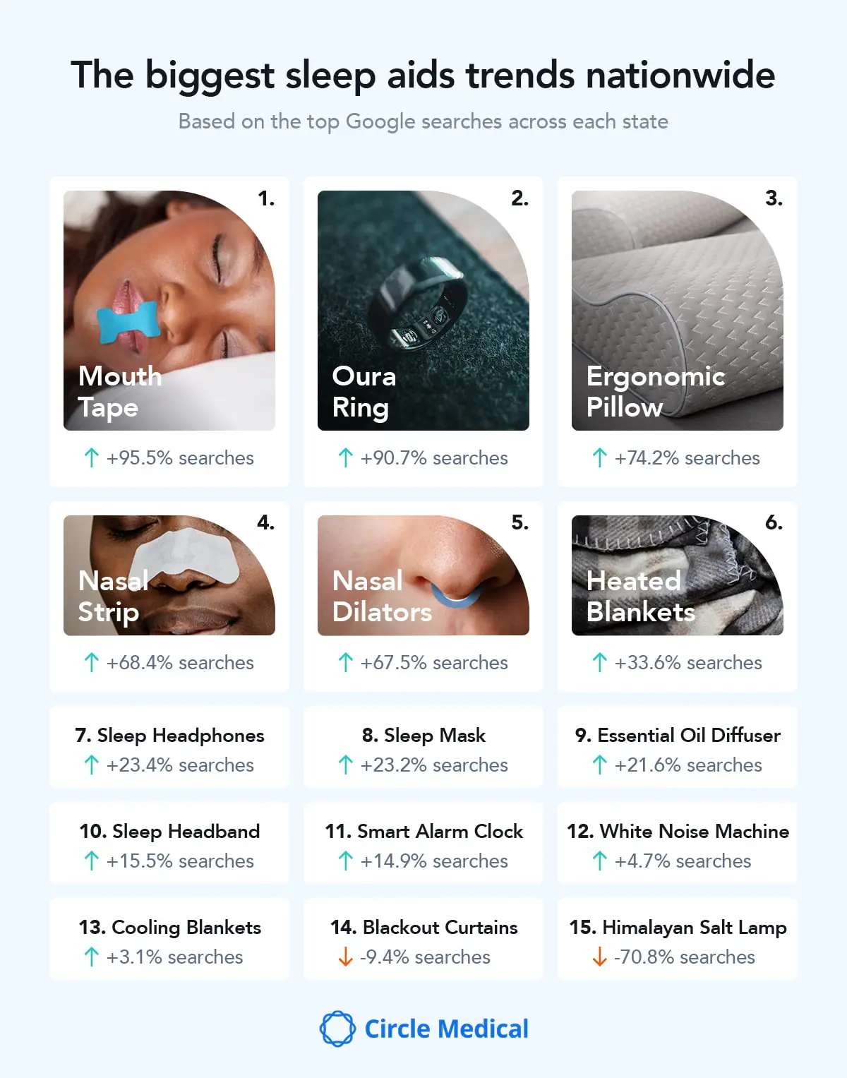 1. Mouth Tape (↑95.5%) Promoted for improving nasal breathing, regulating airflow and reducing snoring, mouth taping is popular among those trying to prevent nighttime mouth breathing.