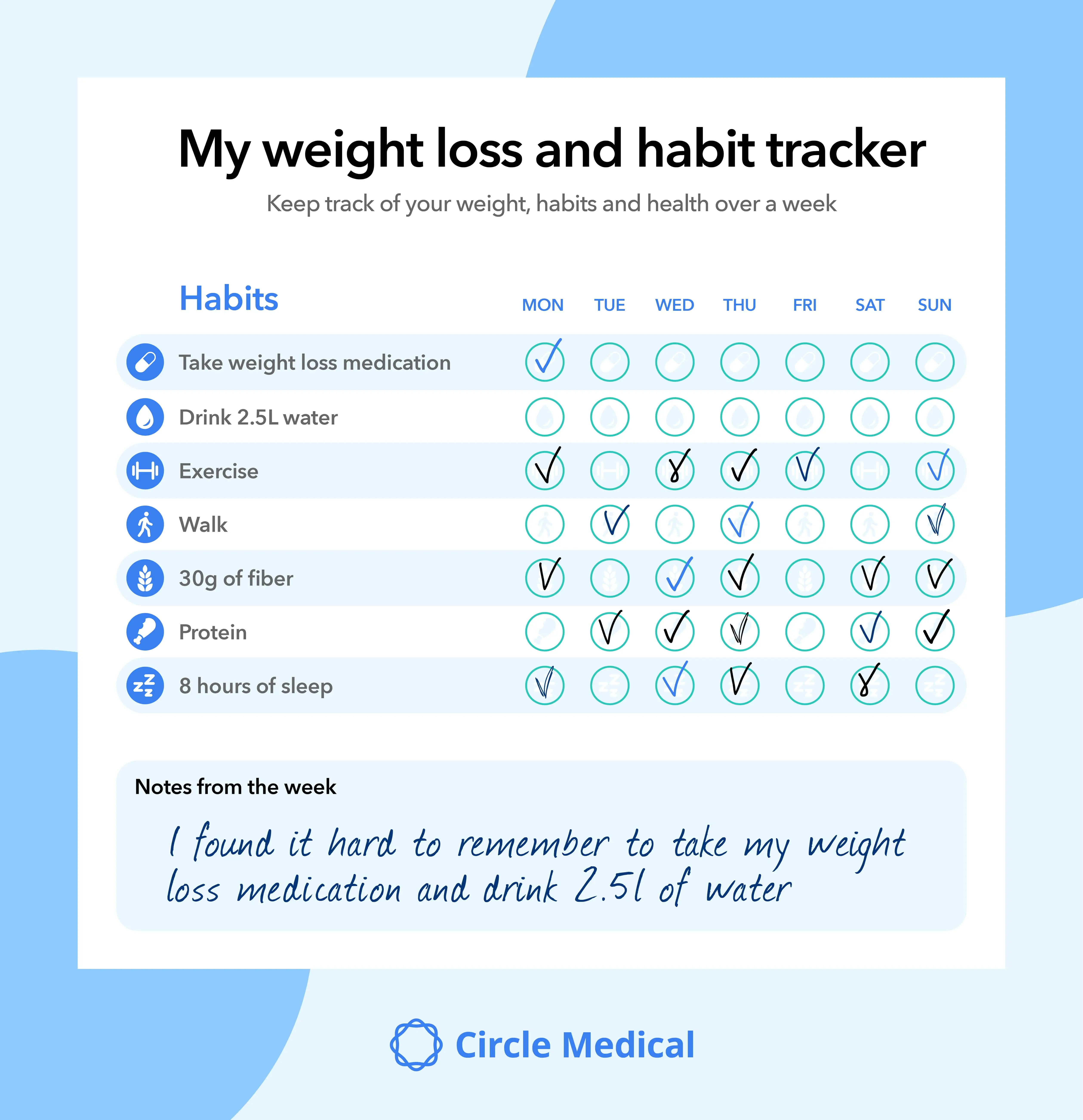 Are you currently prescribed weight loss medication and interested in monitoring its impact on your lifestyle habits? Download our free habit tracker to support your progress.